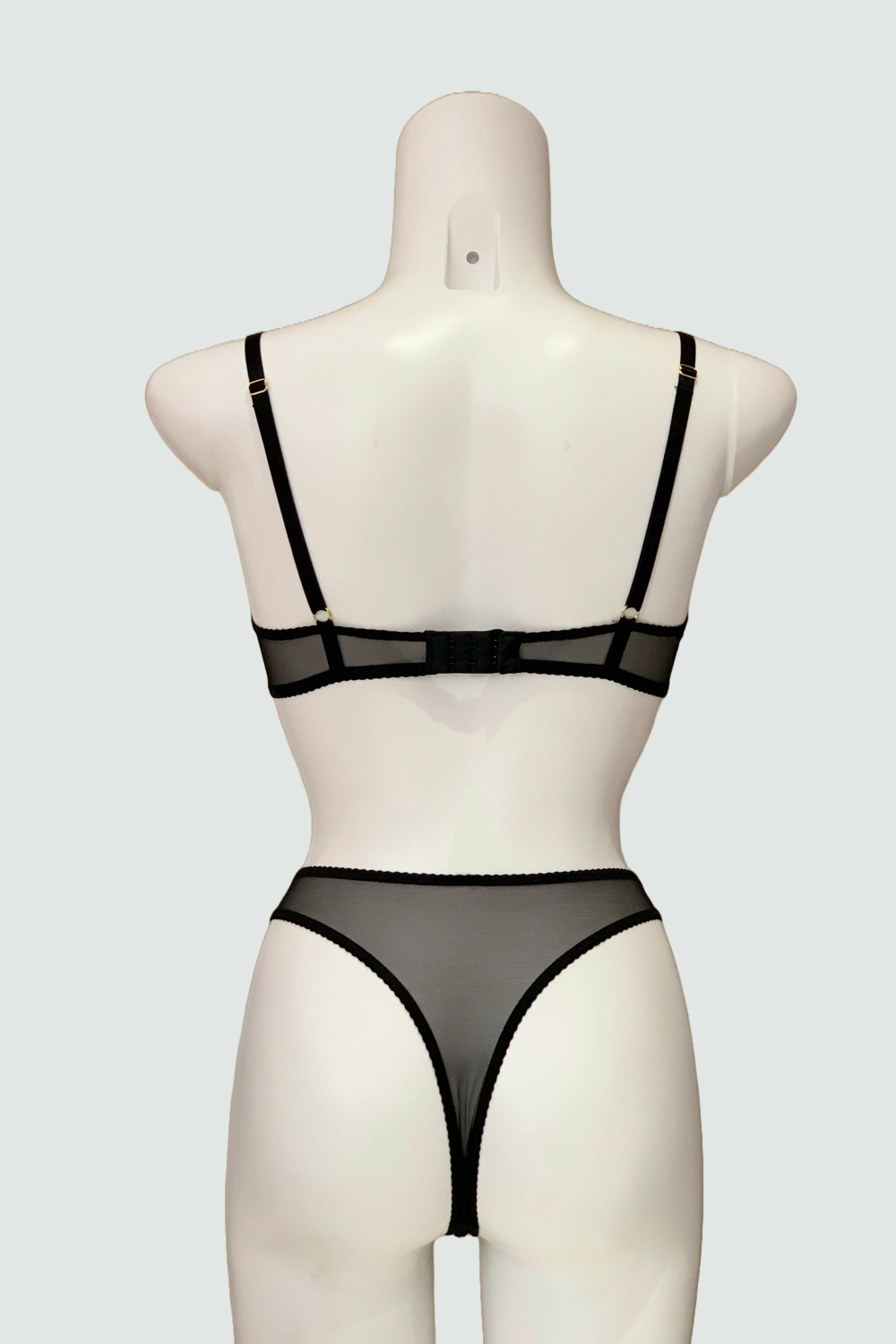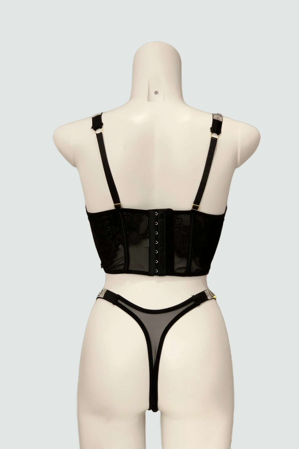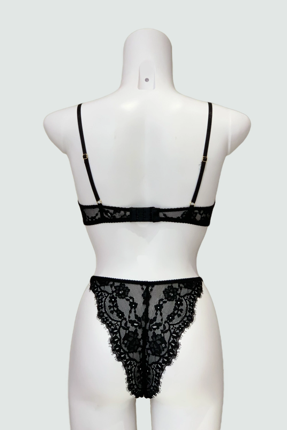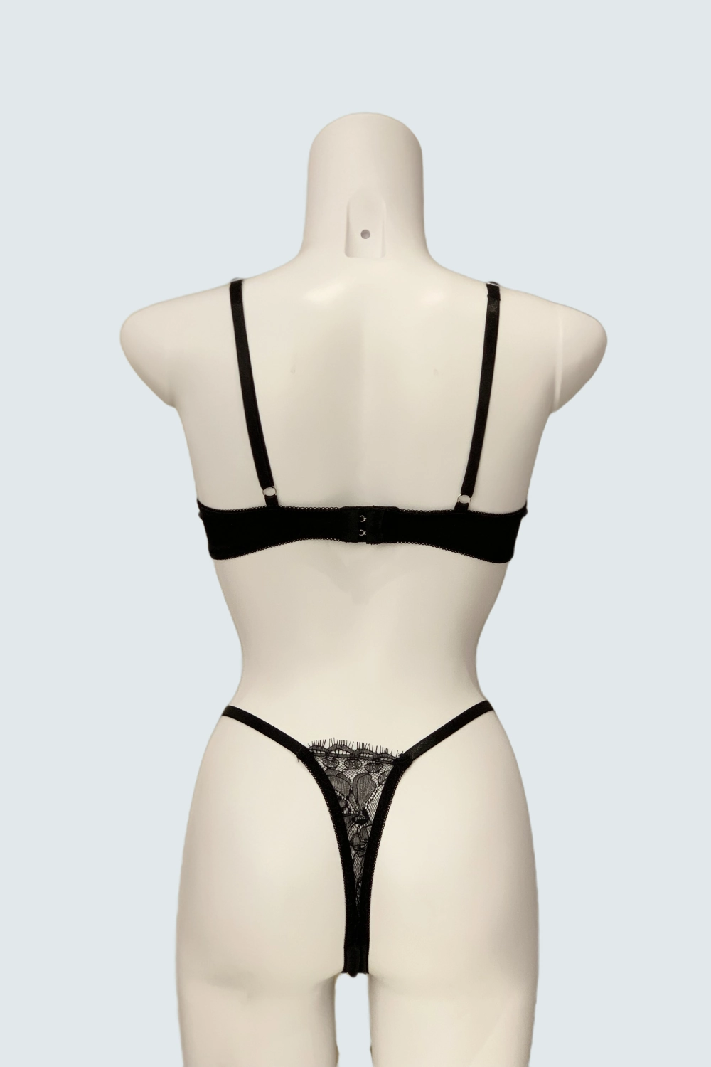 Σετ Σουτιέν Δαντέλα με Ρυθμιζόμενο Στρινγκ – Μαύρο