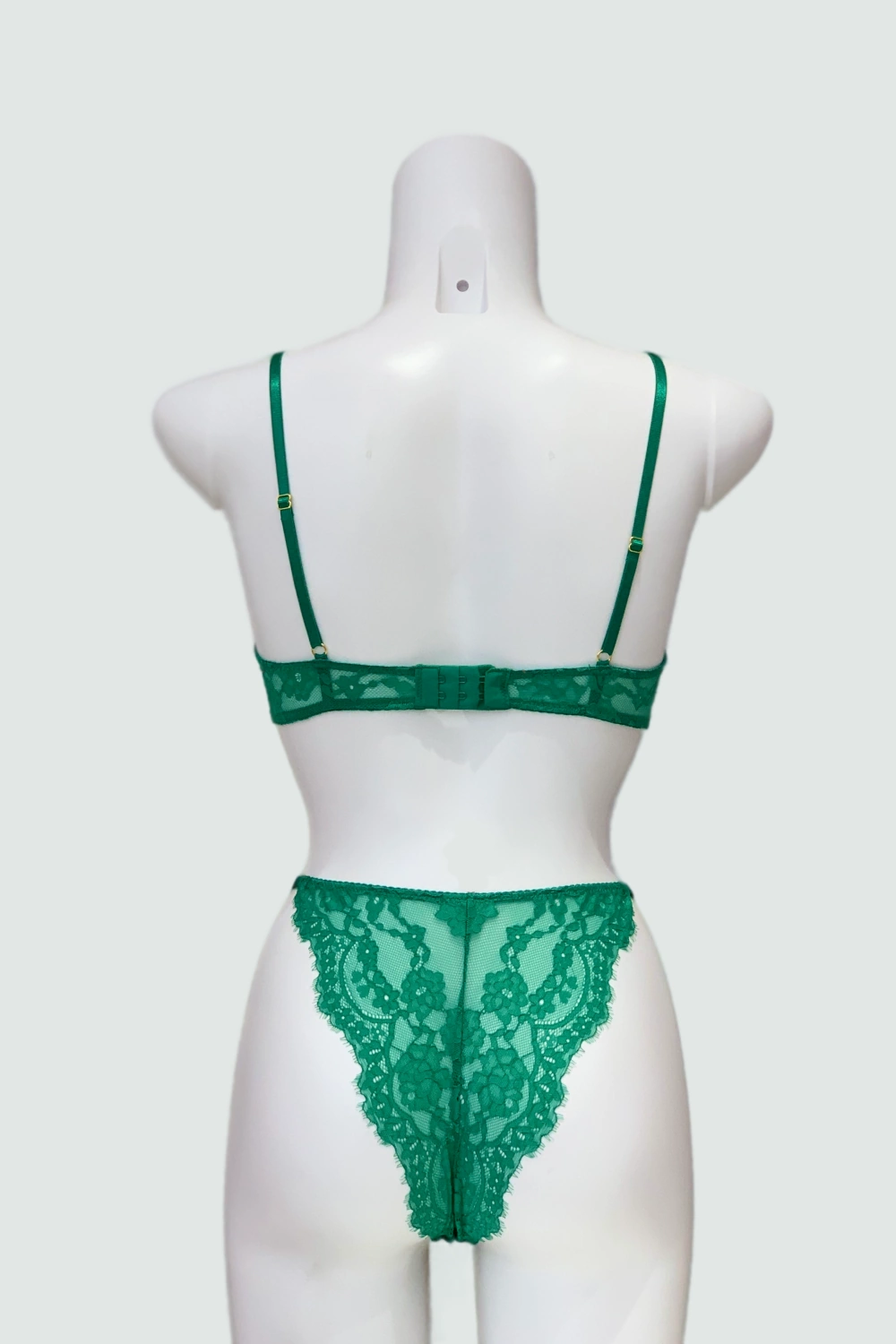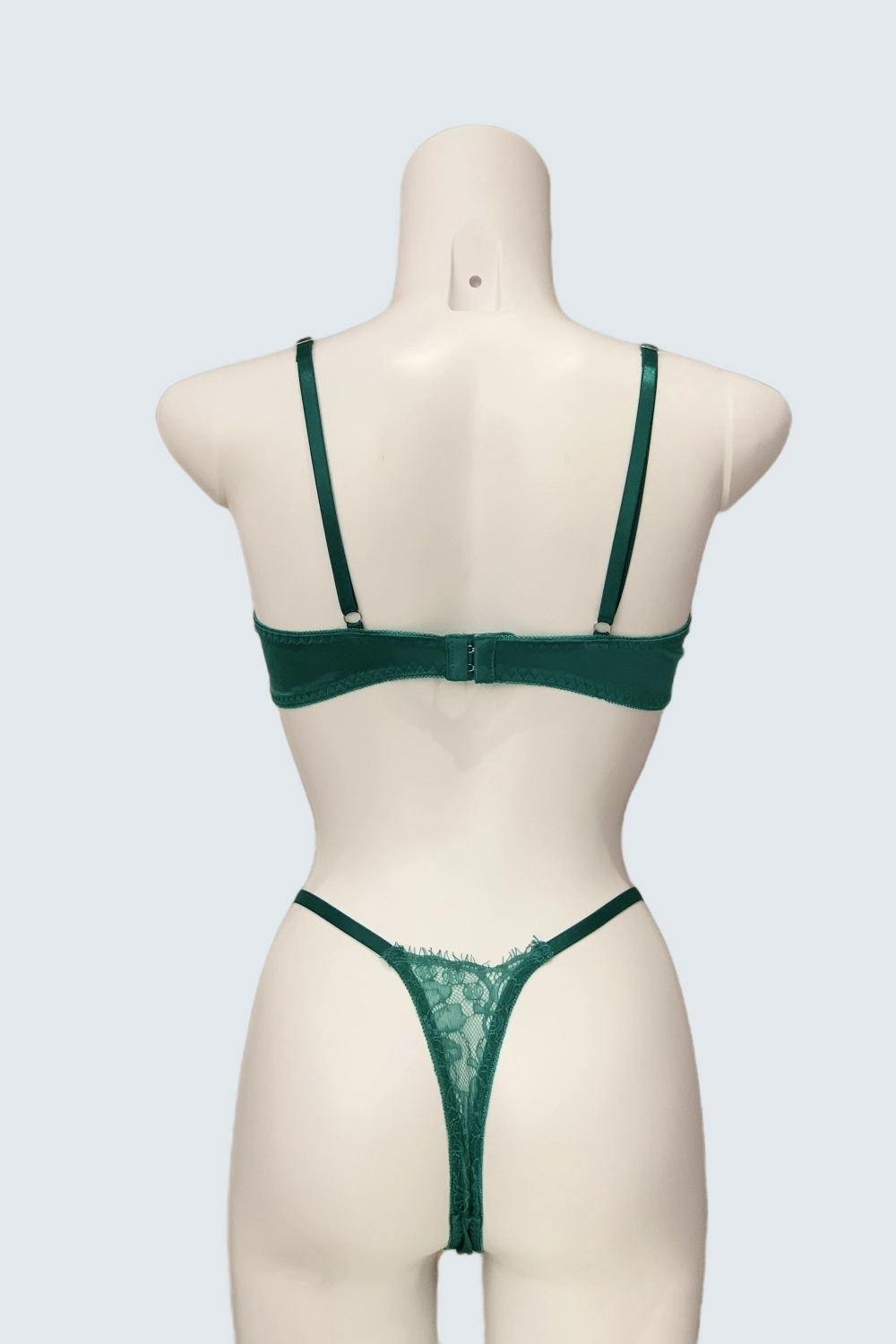 Σετ Σουτιέν Δαντέλα με Ρυθμιζόμενο Στρινγκ – Πράσινο