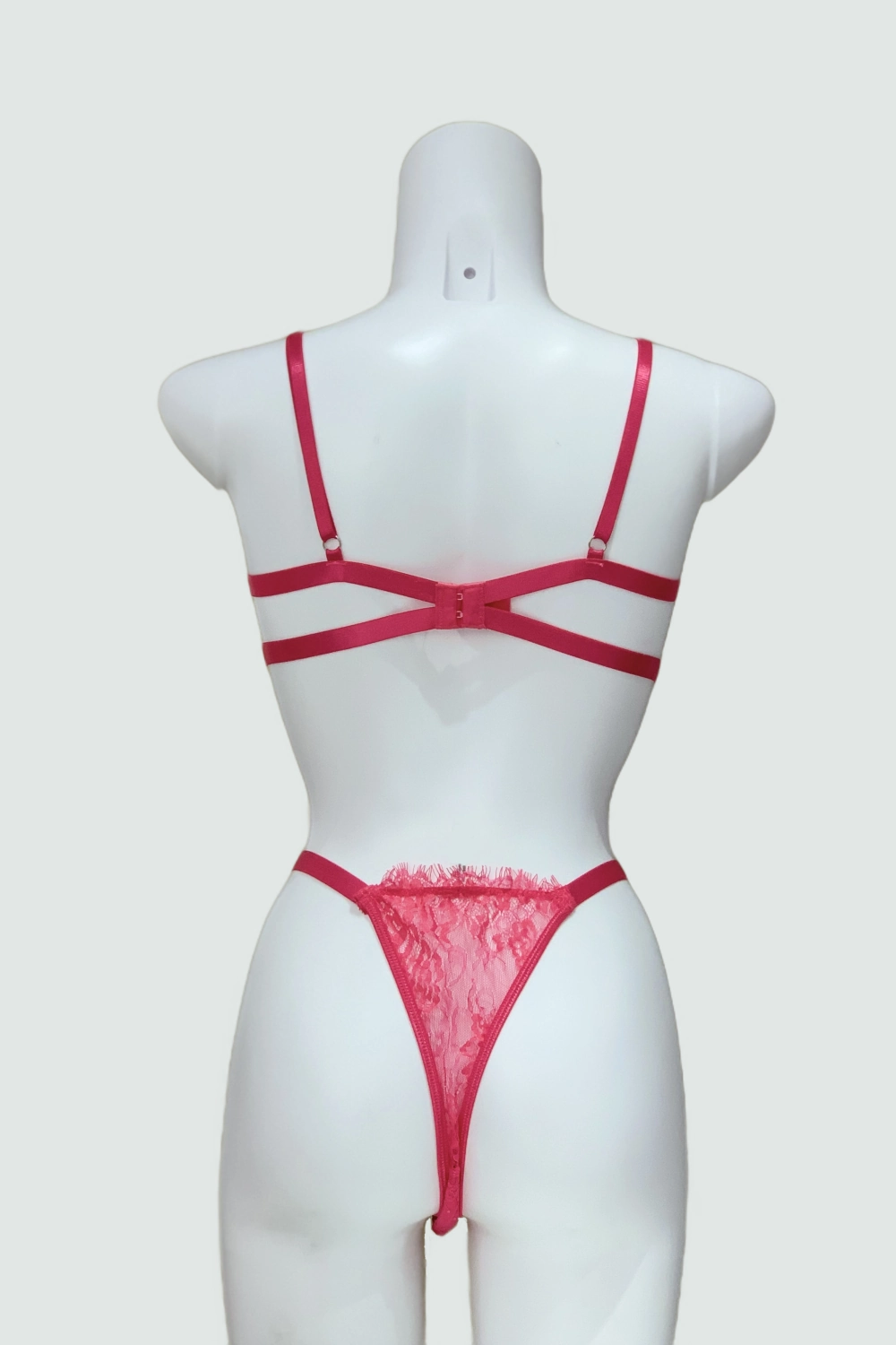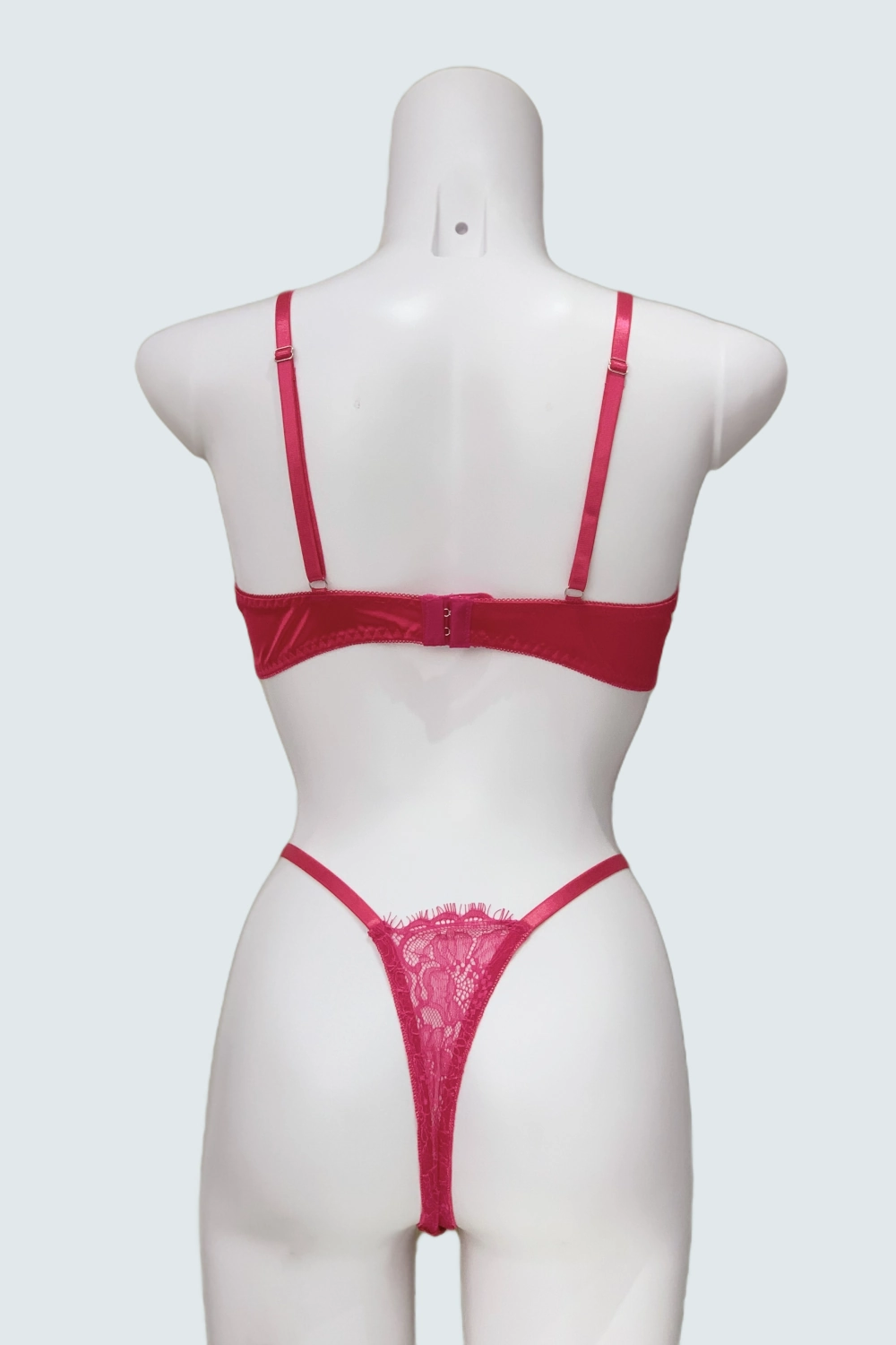 Σετ Σουτιέν Δαντέλα με Ρυθμιζόμενο Στρινγκ – Φούξια