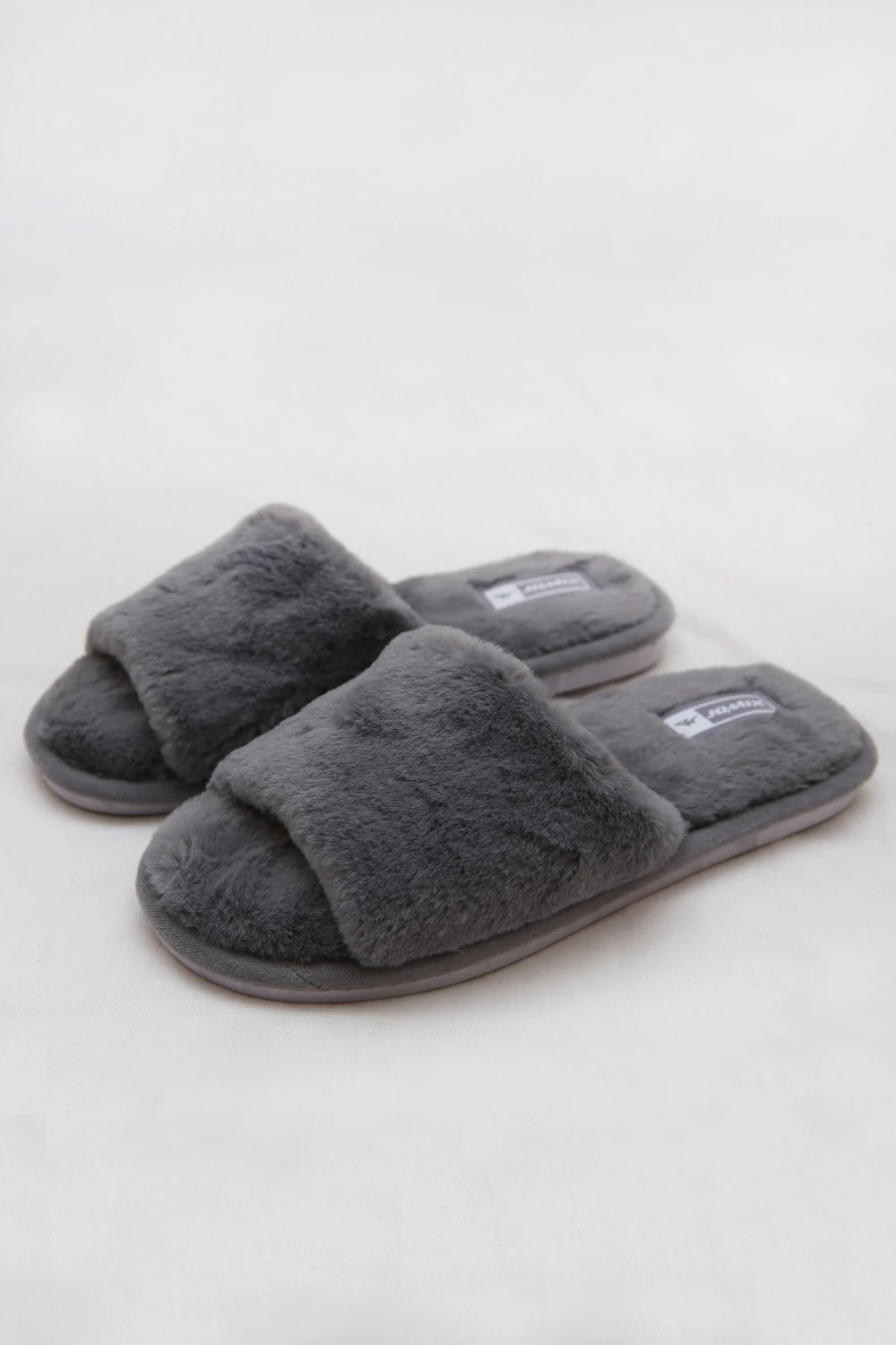 Ανοιχτές Παντόφλες με Συνθετική Γούνα – Γκρι