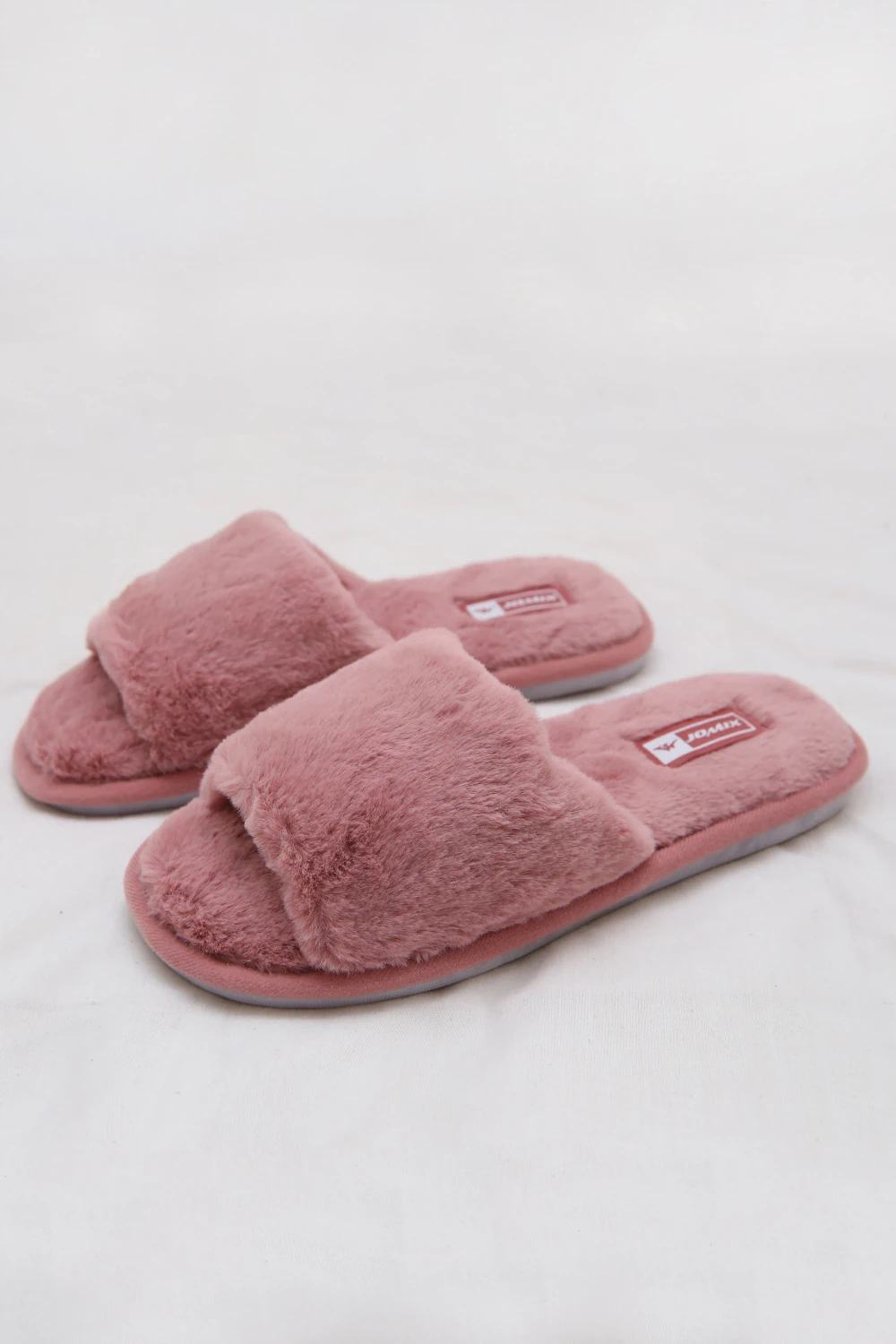 Ανοιχτές Παντόφλες με Συνθετική Γούνα – Ροζ