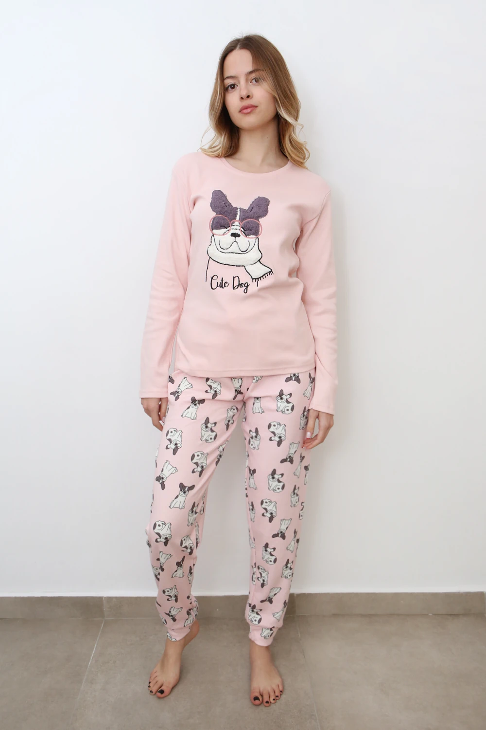 Σετ Πιτζάμα Βαμβακερή με Σκυλάκι – Ροζ