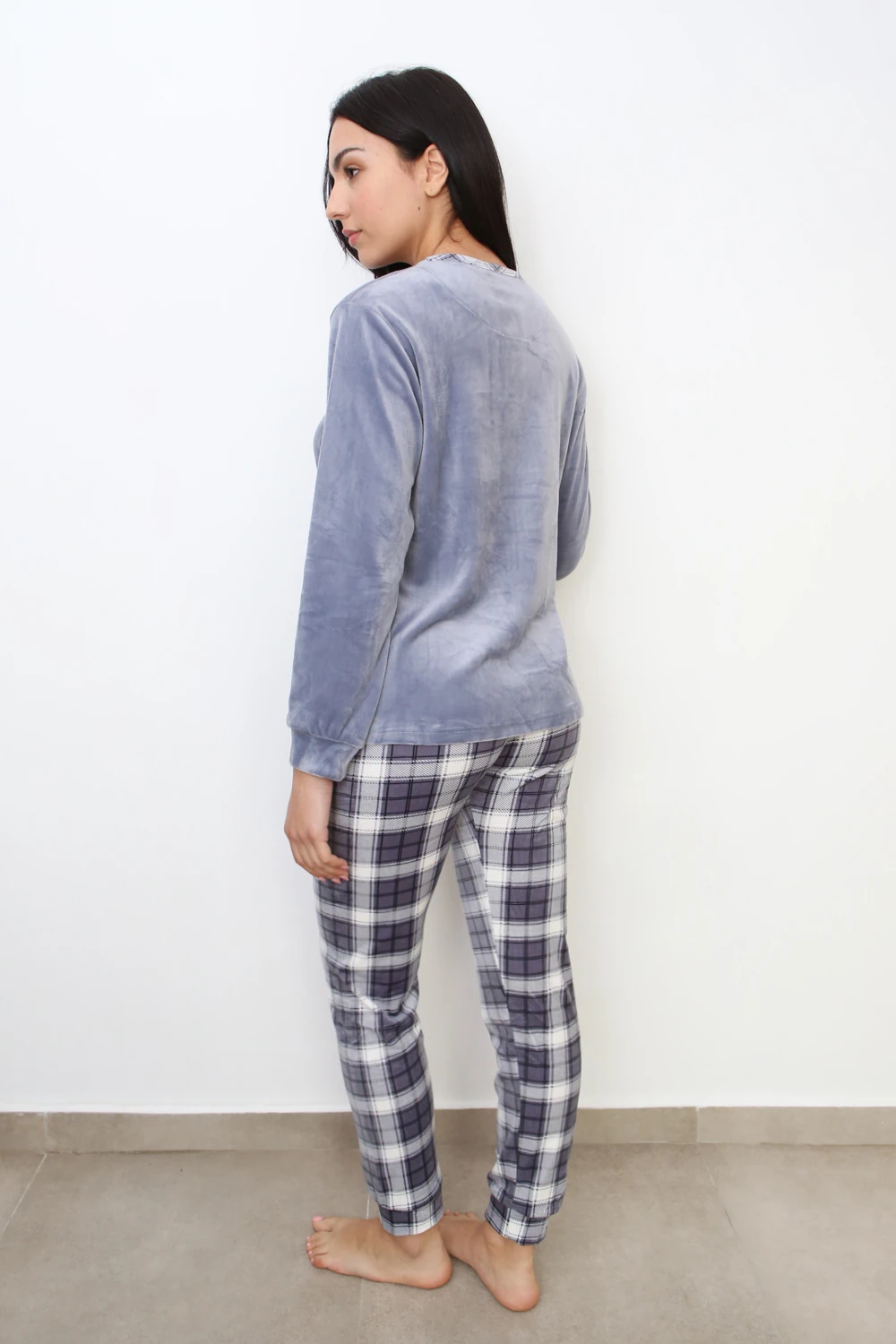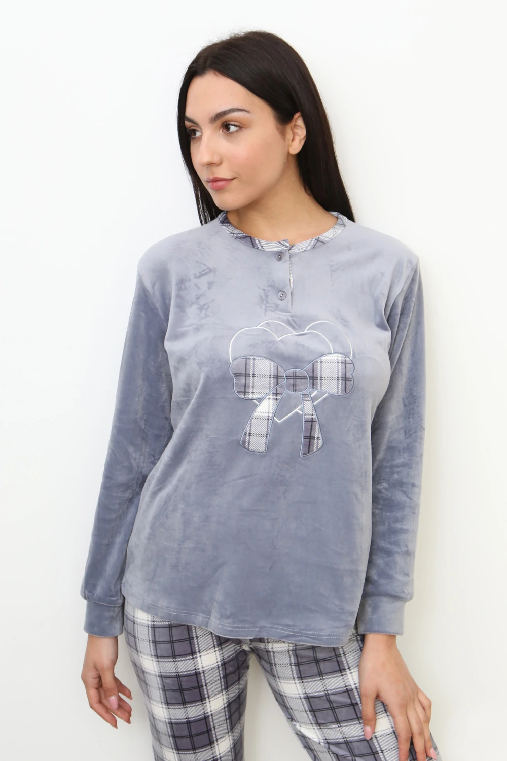 Σετ Πιτζάμα Βελουτέ Καρό – Γκρι