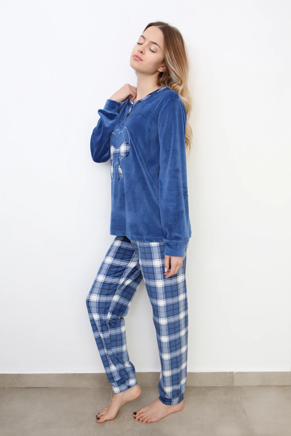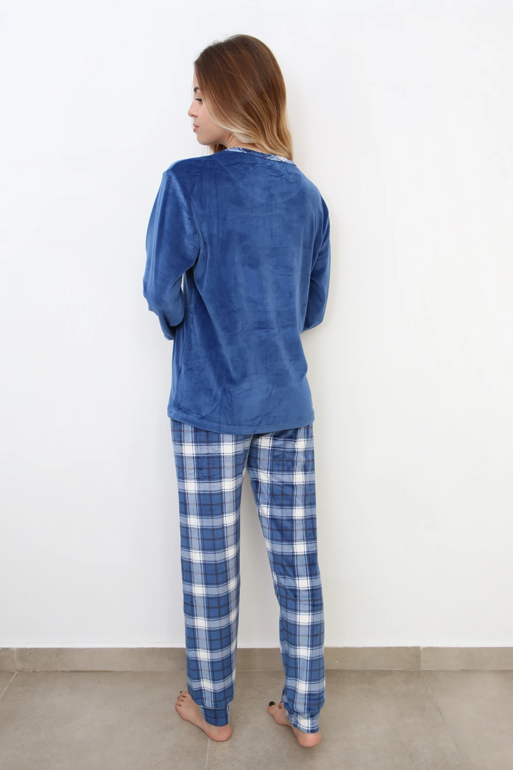 Σετ Πιτζάμα Βελουτέ Καρό – Μπλε