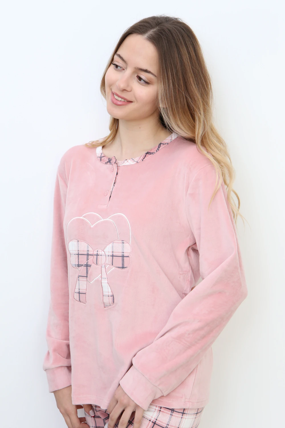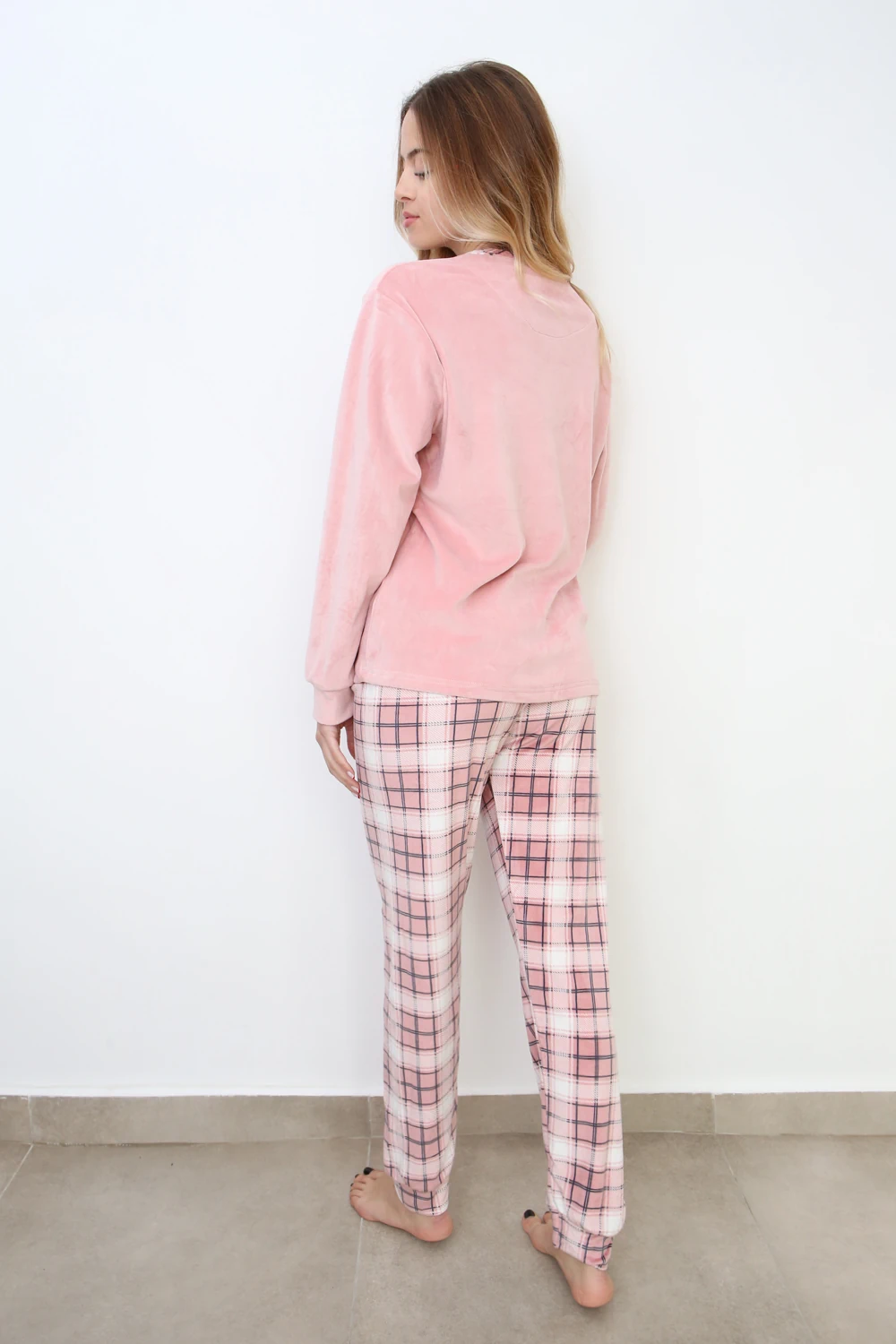 Σετ Πιτζάμα Βελουτέ Καρό – Ροζ