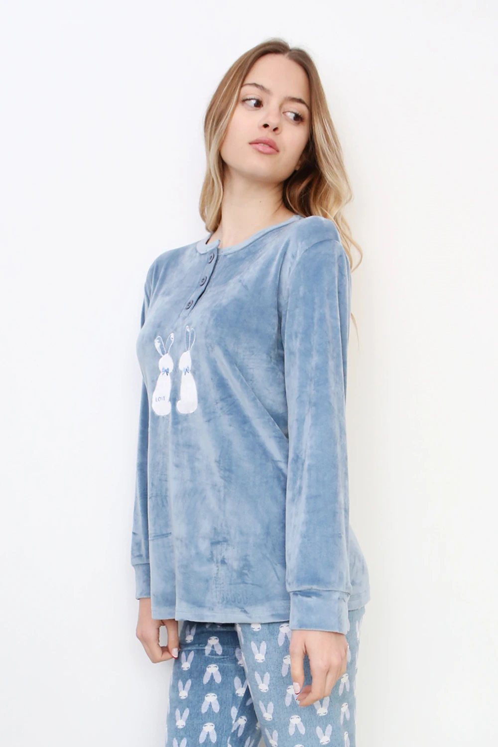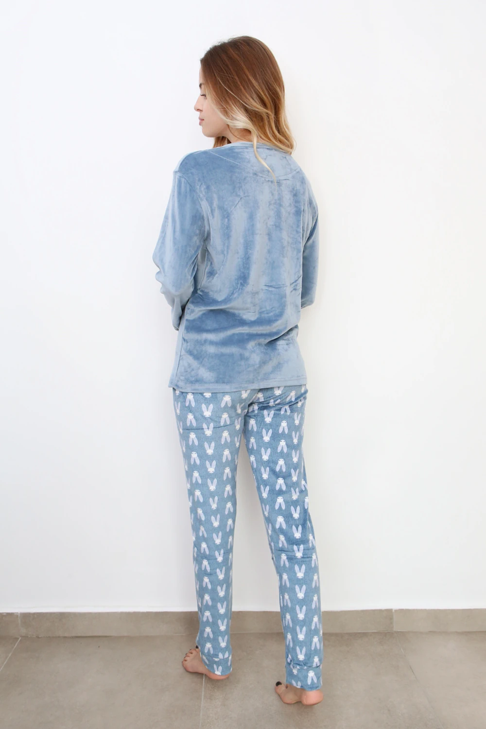 Σετ Πιτζάμα Βελουτέ με Λαγουδάκια – Γαλάζιο | thefelicitysense