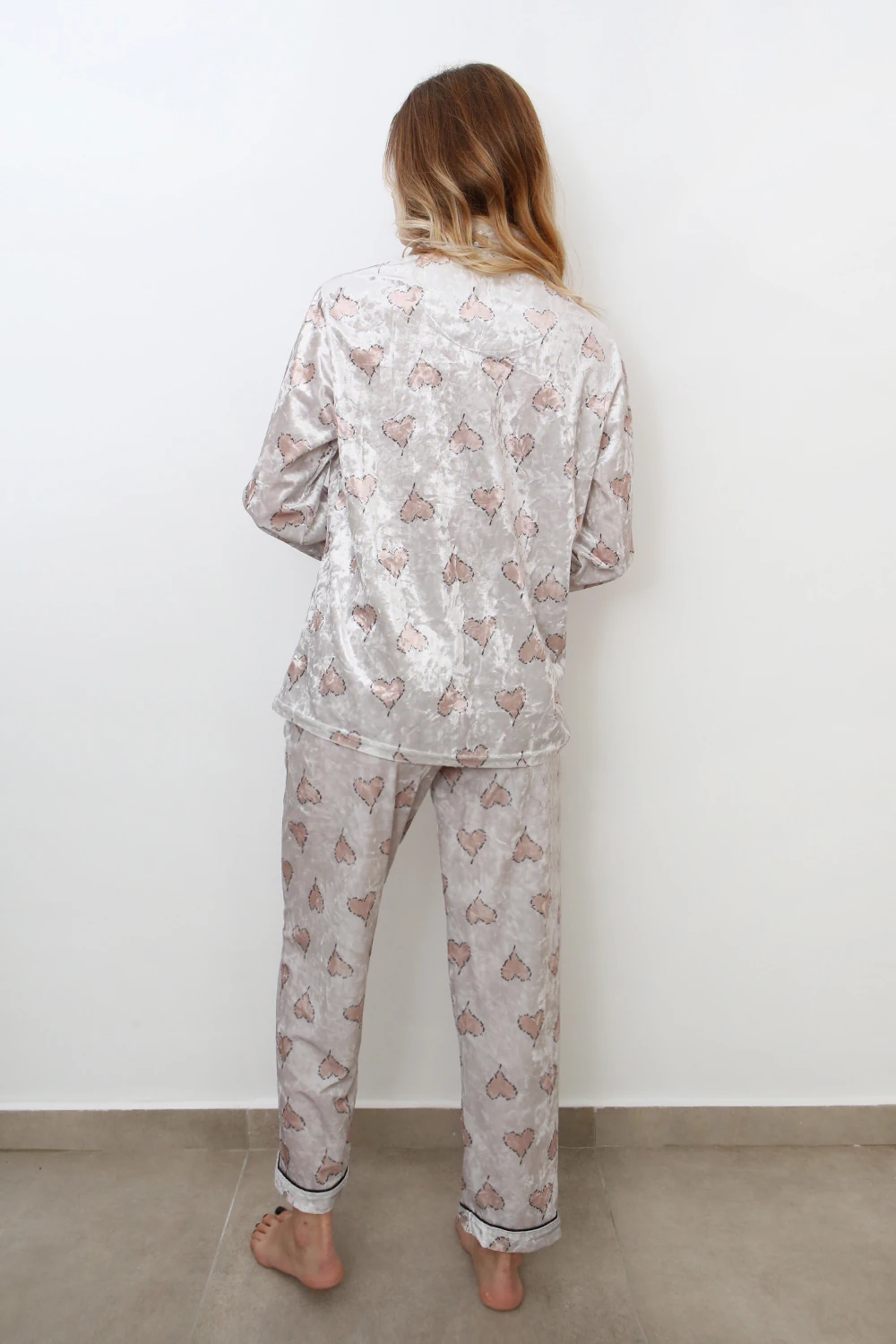 Σετ Πιτζάμα Βελουτέ με Πουκάμισο – Γκρι του Πάγου