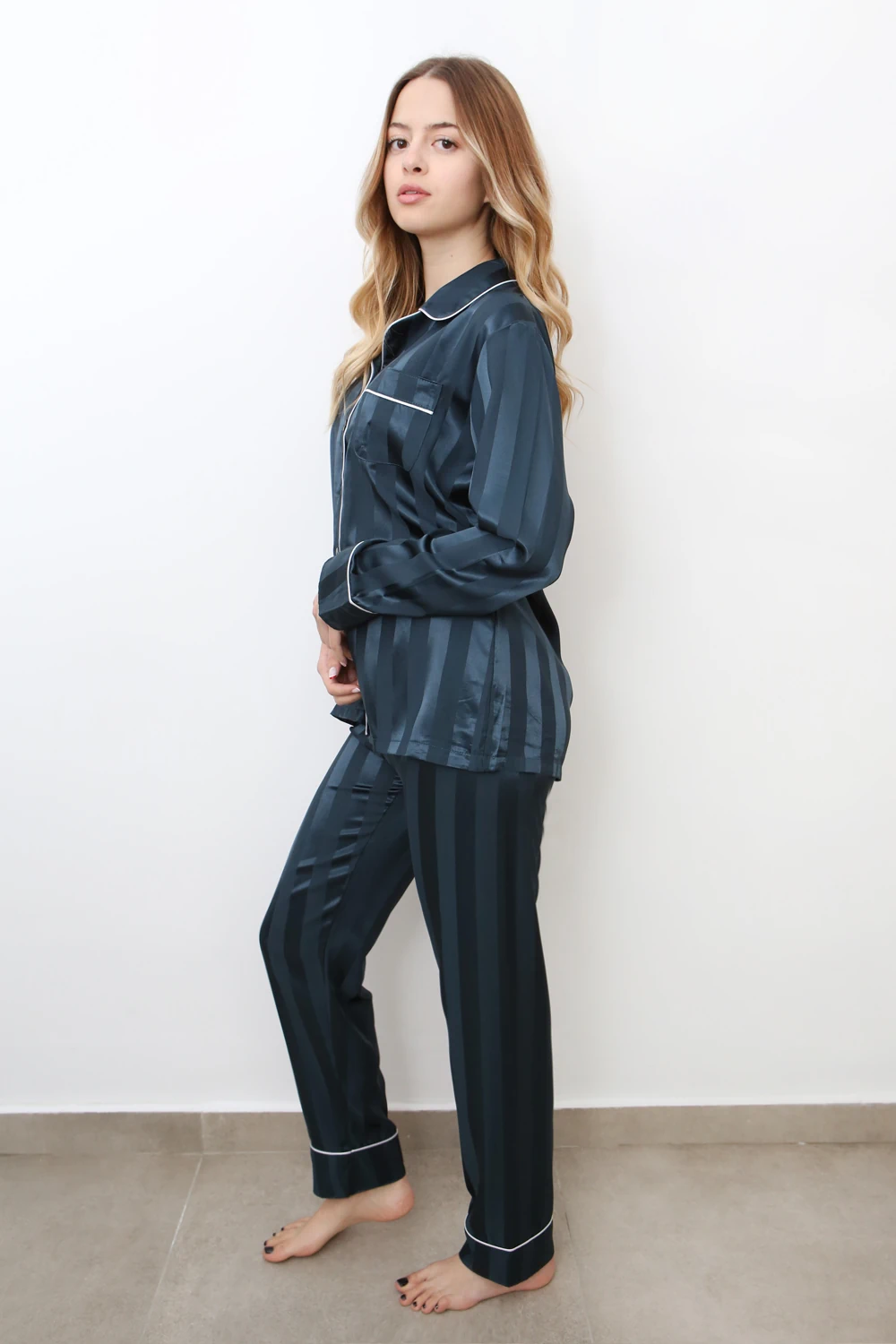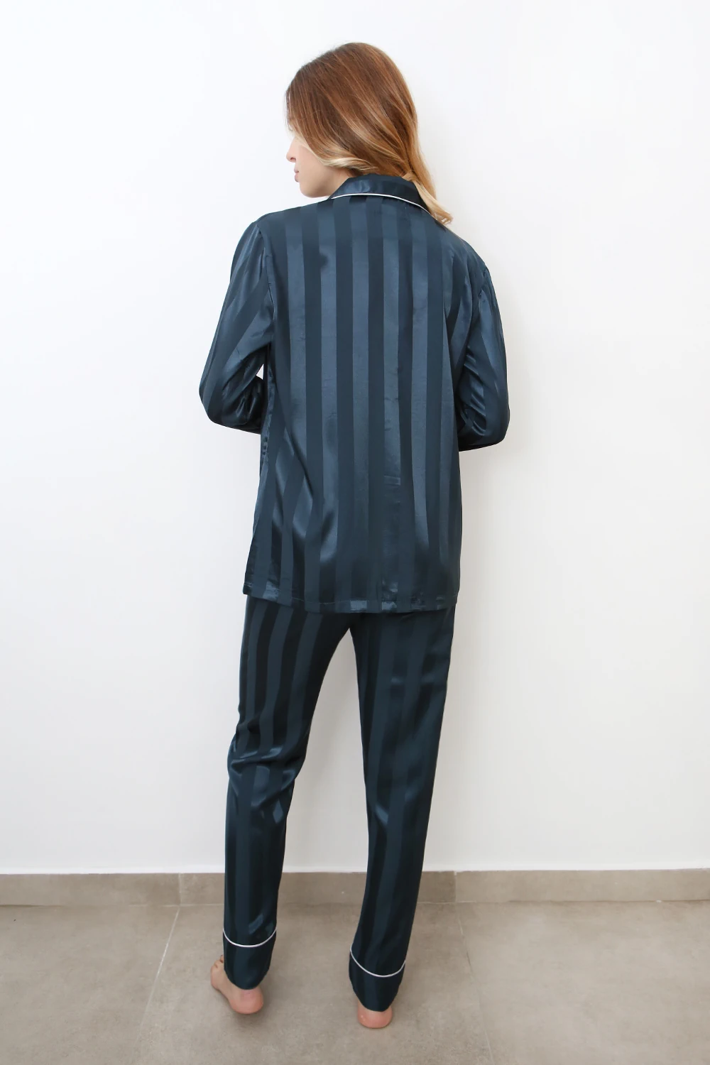 Σετ Πιτζάμα Σατέν με Πουκάμισο Ριγέ – Κυπαρισσί